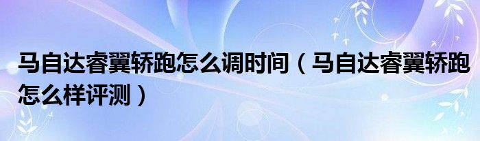 大家好,阳阳来为大家讲解下。马自达睿翼轿跑怎么调时间,马自达睿翼轿跑怎么样评测很多人还不知道,现在让我们一起来看看吧!