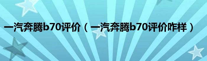 大家好,阳阳来为大家讲解下。一汽奔腾b70评价,一汽奔腾b70评价咋样很多人还不知道,现在让我们一起来看看吧!