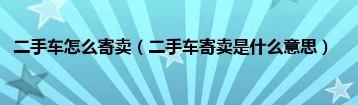 大家好,阳阳来为大家讲解下。二手车怎么寄卖,二手车寄卖是什么意思很多人还不知道,现在让我们一起来看看吧!