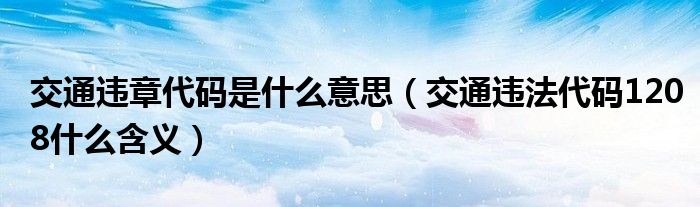 大家好,阳阳来为大家讲解下。交通违章代码是什么意思,交通违法代码1208什么含义很多人还不知道,现在让我们一起来看看吧!