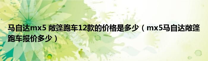 大家好,阳阳来为大家讲解下。马自达mx5 敞篷跑车12款的价格是多少,mx5马自达敞篷跑车报价多少很多人还不知道,现在让我们一起来看看吧!