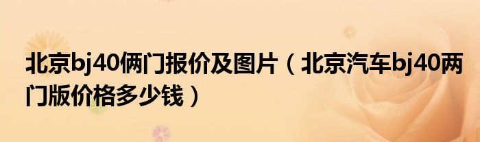 大家好,阳阳来为大家讲解下。北京bj40俩门报价及图片,北京汽车bj40两门版价格多少钱很多人还不知道,现在让我们一起来看看吧!