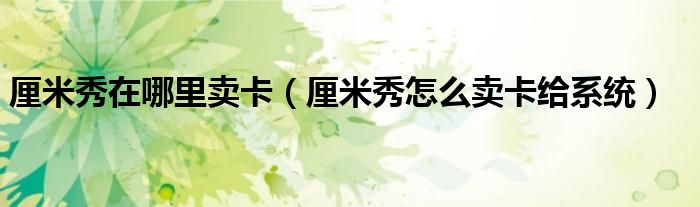 大家好,小晋来为大家解答以下问题,关于厘米秀在哪里卖卡,厘米秀怎么卖卡给系统很多人还不知道,今天让我们一起来看看吧!