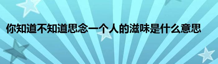 关于你知道不知道思念一个人的滋味是什么意思这个很多人还不知道,今天菲菲来为大家解答以上的问题,现在让我们一起来看看吧!