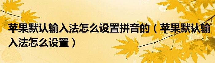 关于苹果默认输入法怎么设置拼音的,苹果默认输入法怎么设置这个很多人还不知道,今天菲菲来为大家解答以上的问题,现在让我们一起来看看吧!