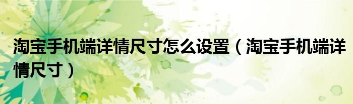 关于淘宝手机端详情尺寸怎么设置,淘宝手机端详情尺寸这个很多人还不知道,今天菲菲来为大家解答以上的问题,现在让我们一起来看看吧!