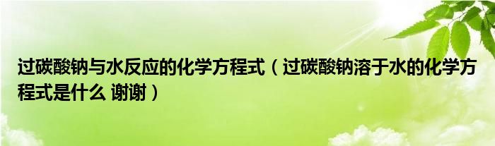 关于过碳酸钠与水反应的化学方程式,过碳酸钠溶于水的化学方程式是什么 谢谢这个很多人还不知道,今天菲菲来为大家解答以上的问题,现在让我们一起来看看吧!