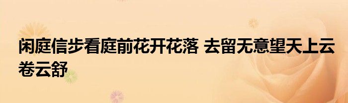 关于闲庭信步看庭前花开花落 去留无意望天上云卷云舒这个很多人还不知道,今天菲菲来为大家解答以上的问题,现在让我们一起来看看吧!
