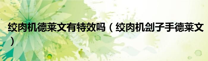 关于绞肉机德莱文有特效吗,绞肉机刽子手德莱文这个很多人还不知道,今天菲菲来为大家解答以上的问题,现在让我们一起来看看吧!