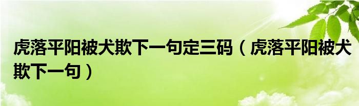虎落平阳被犬欺下一句定三码(虎落平阳被犬欺下一句)