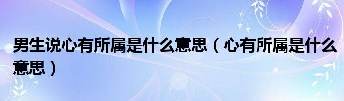 关于男生说心有所属是什么意思,心有所属是什么意思这个很多人还不知道,今天菲菲来为大家解答以上的问题,现在让我们一起来看看吧!