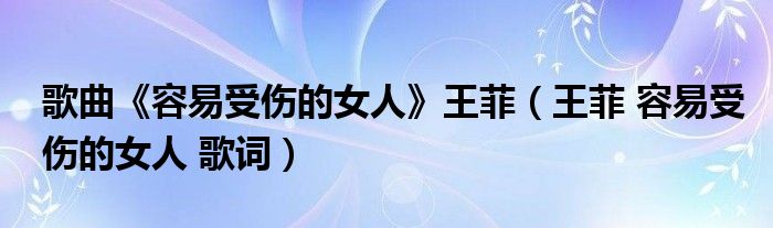 歌曲《容易受伤的女人》王菲(王菲 容易受伤的女人 歌词)