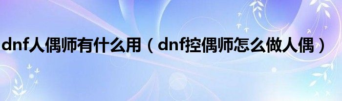 dnf人偶师有什么用(dnf控偶师怎么做人偶)