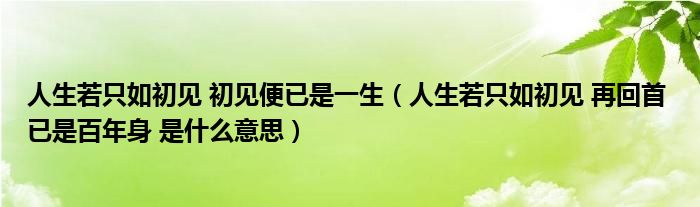 关于人生若只如初见 初见便已是一生,人生若只如初见 再回首 已是百年身 是什么意思这个很多人还不知道,今天菲菲来为大家解答以上的问题,现在让我们一起来看看吧!
