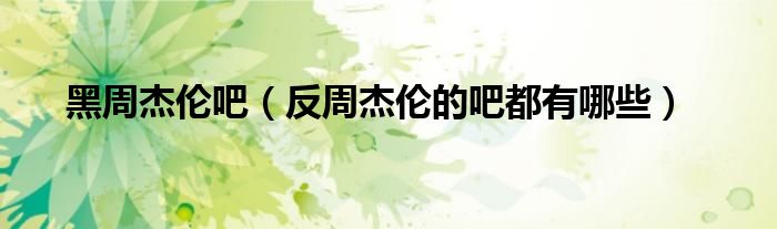 关于黑周杰伦吧,反周杰伦的吧都有哪些这个很多人还不知道,今天菲菲来为大家解答以上的问题,现在让我们一起来看看吧!