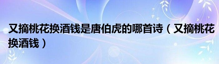 关于又摘桃花换酒钱是唐伯虎的哪首诗,又摘桃花换酒钱这个很多人还不知道,今天菲菲来为大家解答以上的问题,现在让我们一起来看看吧!