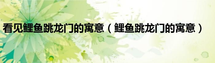 关于看见鲤鱼跳龙门的寓意,鲤鱼跳龙门的寓意这个很多人还不知道,今天菲菲来为大家解答以上的问题,现在让我们一起来看看吧!