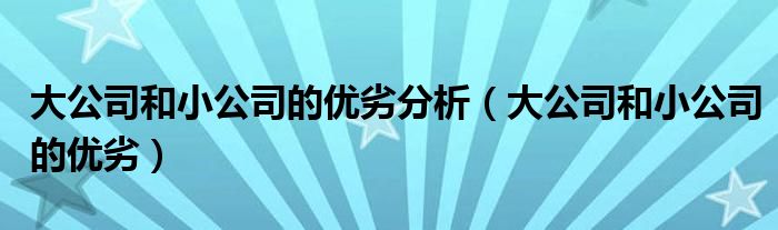 关于大公司和小公司的优劣分析,大公司和小公司的优劣这个很多人还不知道,今天菲菲来为大家解答以上的问题,现在让我们一起来看看吧!