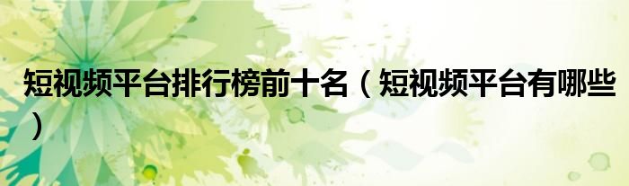 大家好,小晋来为大家解答以下问题,关于短视频平台排行榜前十名,短视频平台有哪些很多人还不知道,今天让我们一起来看看吧!