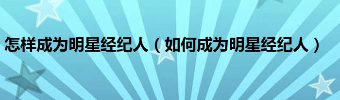 最佳答案大家好,小晋来为大家解答以下问题,关于怎样成为明星经纪人,如何成为明星经纪人很多人还不知道,今天让我们一起来看看吧!1、平时要给客户做一个财务预算,告诉他们怎么花钱,怎么交税,存多少钱,保证他们退休后的生活。2、我们也要像亲人一样和这些客户交朋友,像亲人一样关心,帮助处理好和家...