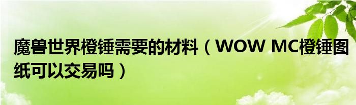关于魔兽世界橙锤需要的材料,WOW MC橙锤图纸可以交易吗这个很多人还不知道,今天菲菲来为大家解答以上的问题,现在让我们一起来看看吧!