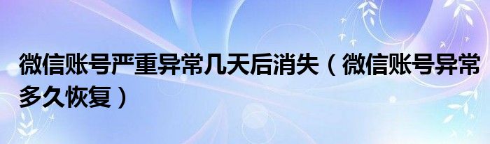 大家好,小晋来为大家解答以下问题,关于微信账号严重异常几天后消失,微信账号异常多久恢复很多人还不知道,今天让我们一起来看看吧!