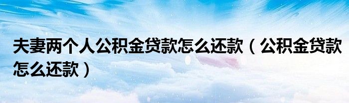 关于夫妻两个人公积金贷款怎么还款,公积金贷款怎么还款这个很多人还不知道,今天菲菲来为大家解答以上的问题,现在让我们一起来看看吧!