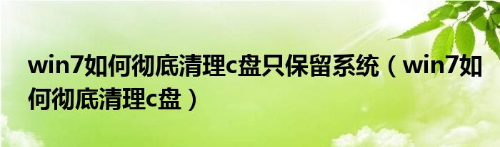 大家好,小晋来为大家解答以下问题,关于win7如何彻底清理c盘只保留系统,win7如何彻底清理c盘很多人还不知道,今天让我们一起来看看吧!