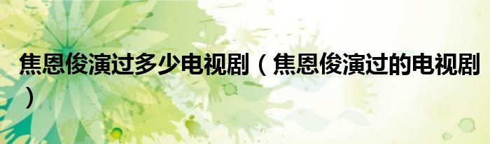关于焦恩俊演过多少电视剧,焦恩俊演过的电视剧这个很多人还不知道,今天菲菲来为大家解答以上的问题,现在让我们一起来看看吧!