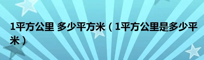 关于1平方公里 多少平方米,1平方公里是多少平米这个很多人还不知道,今天菲菲来为大家解答以上的问题,现在让我们一起来看看吧!