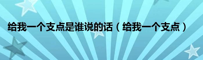 关于给我一个支点是谁说的话,给我一个支点这个很多人还不知道,今天菲菲来为大家解答以上的问题,现在让我们一起来看看吧!