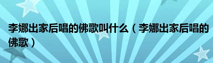 关于李娜出家后唱的佛歌叫什么,李娜出家后唱的佛歌这个很多人还不知道,今天菲菲来为大家解答以上的问题,现在让我们一起来看看吧!