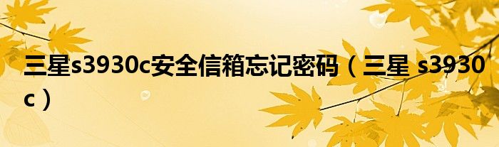 大家好,来宝来为大家解答以下问题,三星s3930c安全信箱忘记密码,三星 s3930c很多人还不知道,今天让我们一起来看看吧!