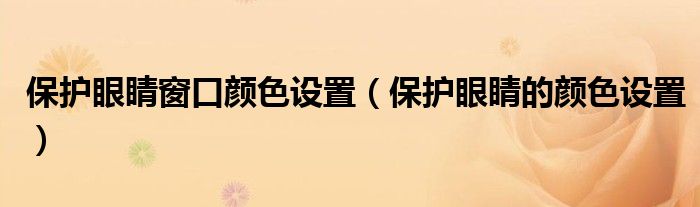 大家好,来宝来为大家解答以下问题,保护眼睛窗口颜色设置,保护眼睛的颜色设置很多人还不知道,今天让我们一起来看看吧!