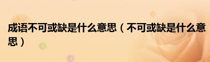 关于成语不可或缺是什么意思,不可或缺是什么意思这个很多人还不知道,今天菲菲来为大家解答以上的问题,现在让我们一起来看看吧!