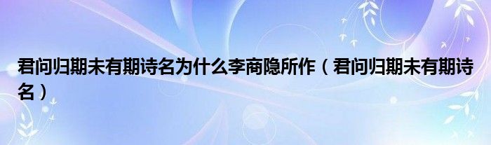君问归期未有期诗名为什么李商隐所作(君问归期未有期诗名)
