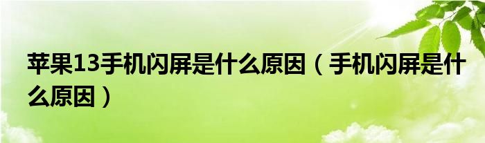 大家好,小晋来为大家解答以下问题,关于苹果13手机闪屏是什么原因,手机闪屏是什么原因很多人还不知道,今天让我们一起来看看吧!