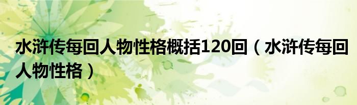 大家好,小晋来为大家解答以下问题,关于水浒传每回人物性格概括120回,水浒传每回人物性格很多人还不知道,今天让我们一起来看看吧!