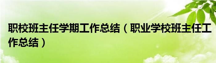 关于职校班主任学期工作总结,职业学校班主任工作总结这个很多人还不知道,今天菲菲来为大家解答以上的问题,现在让我们一起来看看吧!