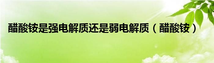 关于醋酸铵是强电解质还是弱电解质,醋酸铵这个很多人还不知道,今天菲菲来为大家解答以上的问题,现在让我们一起来看看吧!