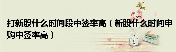 关于打新股什么时间段中签率高,新股什么时间申购中签率高这个很多人还不知道,今天菲菲来为大家解答以上的问题,现在让我们一起来看看吧!