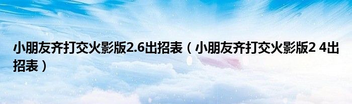 关于小朋友齐打交火影版2.6出招表,小朋友齐打交火影版2 4出招表这个很多人还不知道,今天菲菲来为大家解答以上的问题,现在让我们一起来看看吧!
