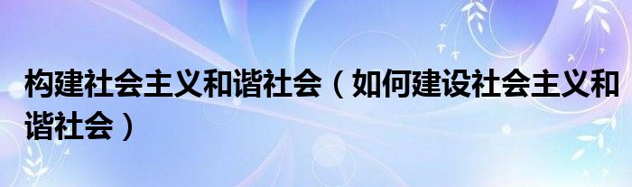 关于构建社会主义和谐社会,如何建设社会主义和谐社会这个很多人还不知道,今天菲菲来为大家解答以上的问题,现在让我们一起来看看吧!