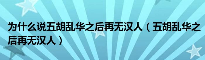 关于为什么说五胡乱华之后再无汉人,五胡乱华之后再无汉人这个很多人还不知道,今天菲菲来为大家解答以上的问题,现在让我们一起来看看吧!