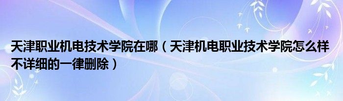 关于天津职业机电技术学院在哪,天津机电职业技术学院怎么样 不详细的一律删除这个很多人还不知道,今天菲菲来为大家解答以上的问题,现在让我们一起来看看吧!