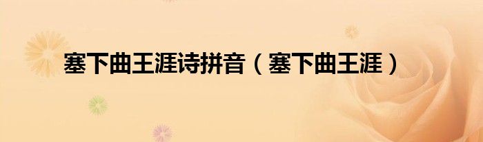 关于塞下曲王涯诗拼音,塞下曲王涯这个很多人还不知道,今天菲菲来为大家解答以上的问题,现在让我们一起来看看吧!
