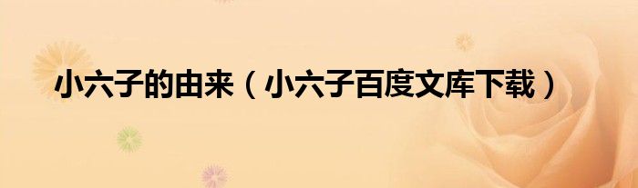 关于小六子的由来,小六子百度文库下载这个很多人还不知道,今天菲菲来为大家解答以上的问题,现在让我们一起来看看吧!