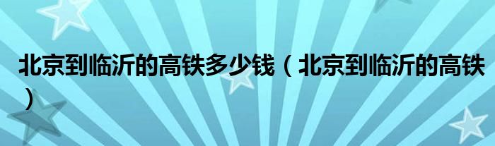 关于北京到临沂的高铁多少钱,北京到临沂的高铁这个很多人还不知道,今天菲菲来为大家解答以上的问题,现在让我们一起来看看吧!