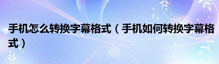 大家好,小晋来为大家解答以下问题,关于手机怎么转换字幕格式,手机如何转换字幕格式很多人还不知道,今天让我们一起来看看吧!