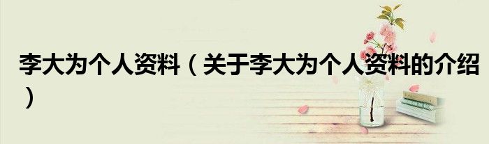 大家好,今天小乐来为大家解答以上的问题。李大为个人资料,关于李大为个人资料的介绍很多人还不知道,现在让我们一起来看看吧!